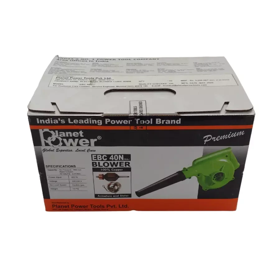 Planet Power Air Blower comes with 6 months warranty against manufacture defect. Rated Input Power: 650w , Capacity Air Pressure : 400mm , No-load Speed : 13000rpm , Net Weight: 1.5kg, Accessories are optional.